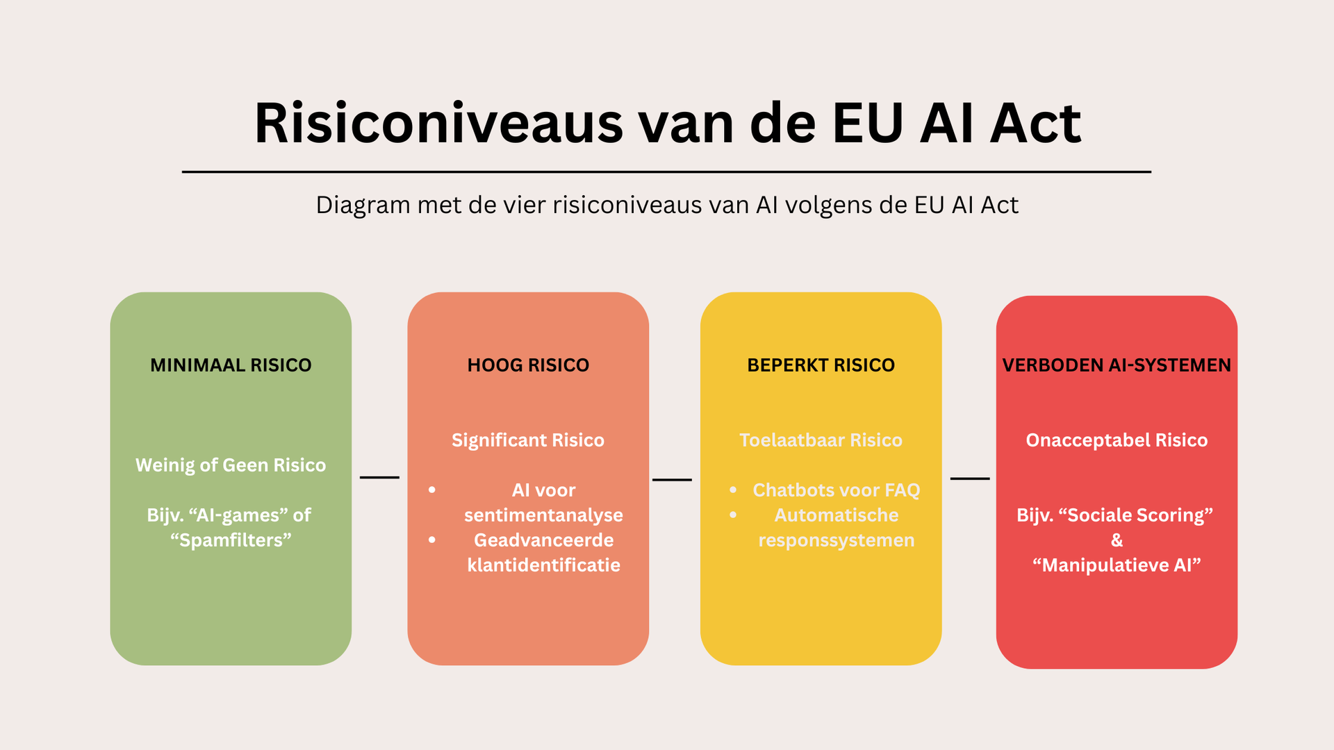 Voor hoog-risico systemen gelden veel verdergaande eisen: uitgebreide documentatie, verplicht menselijk toezicht, een aantoonbaar risicobeoordelingsproces en een heldere verantwoordingsstructuur binnen de organisatie.